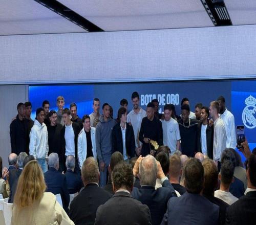 姆巴佩领取欧洲金靴奖,皇马全队出席并合影留念