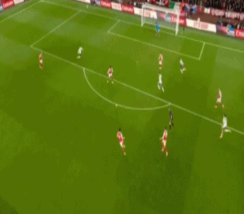 第76分钟,特罗萨德突入禁区左肋之后无私横传,埃泽劲射破门,将比分扩大为4比1!在埃泽完成帽子戏法之后,阿尔特塔疯狂庆祝!